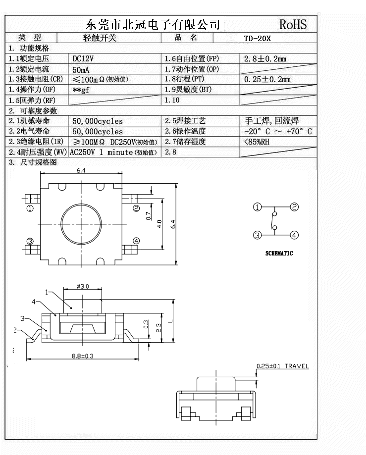 產品名稱:TD-20X輕觸開關