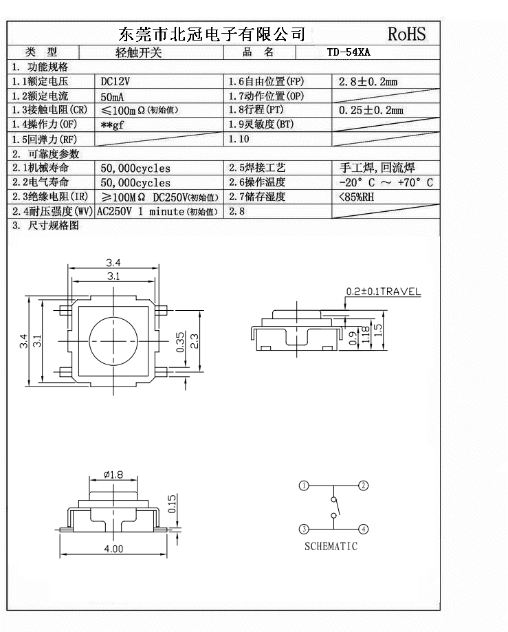 7.Travel:0.25±0.1mm
