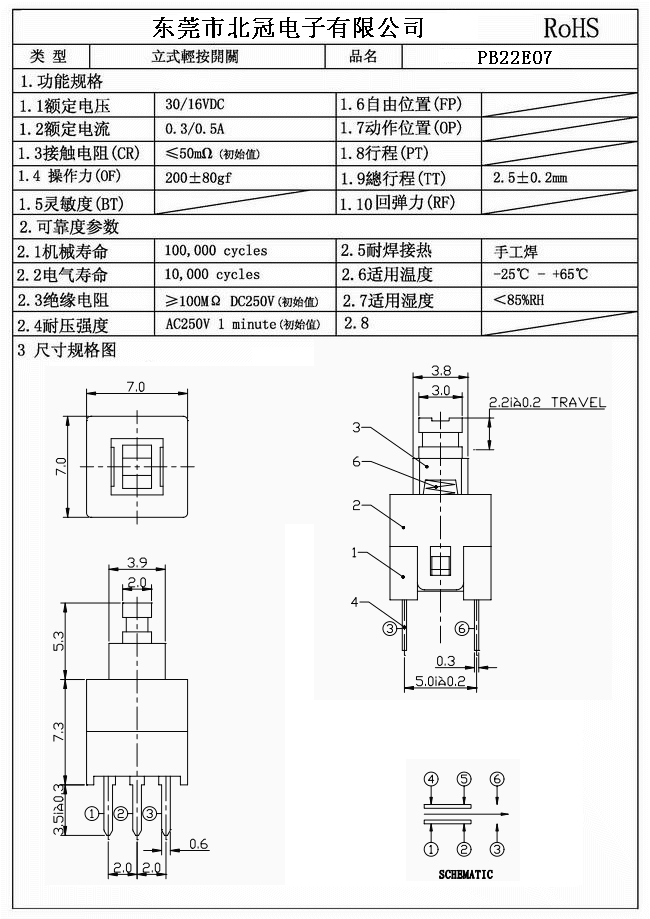 3.Lnsulation Resistance: ≥100mΩ DC500V