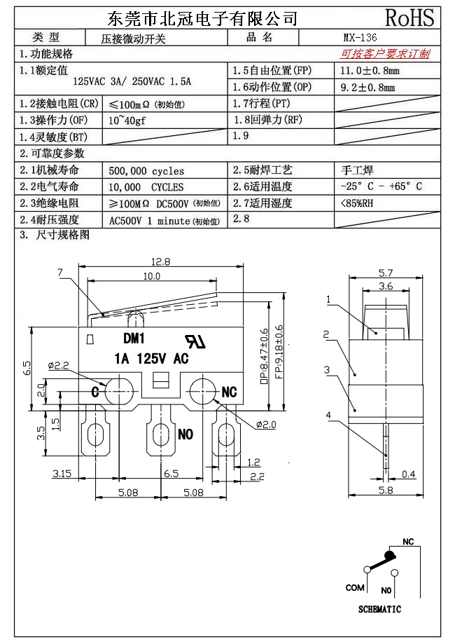 6.Mechanical Life: 100,000Cycles