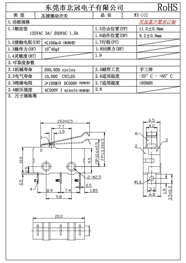 3.Lnsulation Resistance: ≥100mΩ DC500V