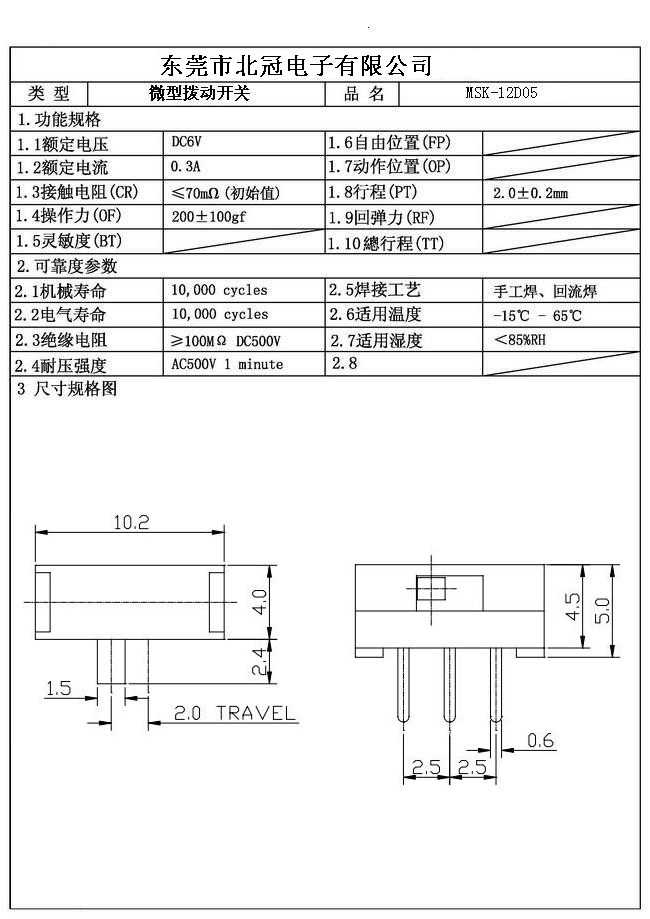 7. Operating Life : 10,000Cycles