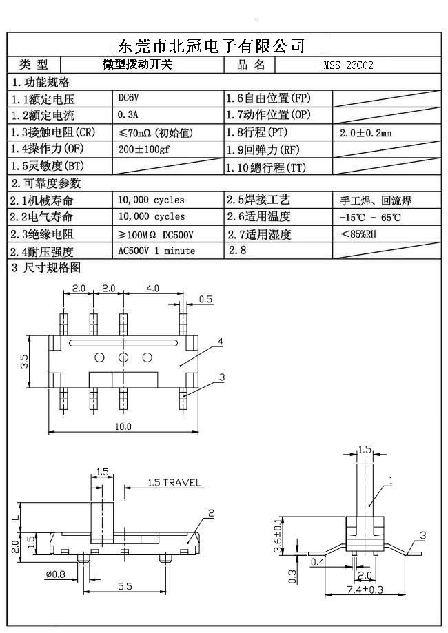 產(chǎn)品名稱:MSS-23C02撥動開關
