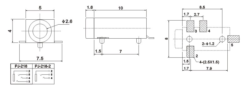 品名:2.5耳機插座 耳機插座技術參數: 1.額定負荷:0.5A 30V DC 2.按觸電阻:100 mΩ max. 3.使用溫度:-20℃~70℃ 4.插拔力:3-20N 5.使用壽命:5,000cycles 耳機插座主要組成部件: 1.塑膠底座 2.磷銅或鈹銅簧片