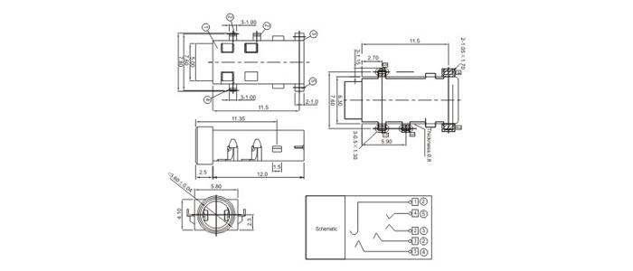品名:3.5耳機插座 耳機插座技術參數: 1.額定負荷:0.5A 30V DC 2.按觸電阻:100 mΩ max. 3.使用溫度:-20℃~70℃ 4.插拔力:3-20N 5.使用壽命:5,000cycles 耳機插座主要組成部件: 1.塑膠底座 2.磷銅或鈹銅簧片