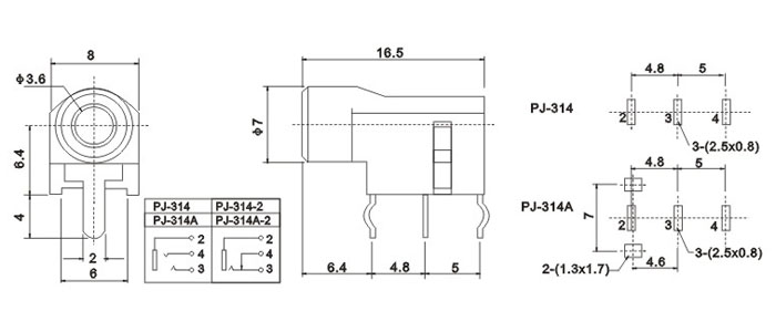 產(chǎn)品名稱:PJ-314A 品名:3.5耳機(jī)插座 |