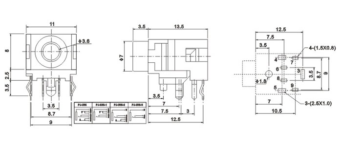 產(chǎn)品名稱:PJ-335 品名:3.5耳機(jī)插座 |