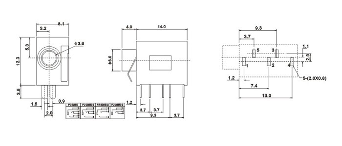 產(chǎn)品名稱:PJ-325E 品名:3.5耳機插座 |