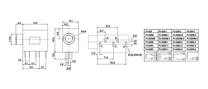 產(chǎn)品名稱:PJ-325 品名:3.5耳機插座 |
