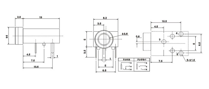品名:3.5耳機插座 耳機插座技術參數: 1.額定負荷:0.5A 30V DC 2.按觸電阻:100 mΩ max. 3.使用溫度:-20℃~70℃ 4.插拔力:3-20N 5.使用壽命:5,000cycles 耳機插座主要組成部件: 1.塑膠底座 2.磷銅或鈹銅簧片