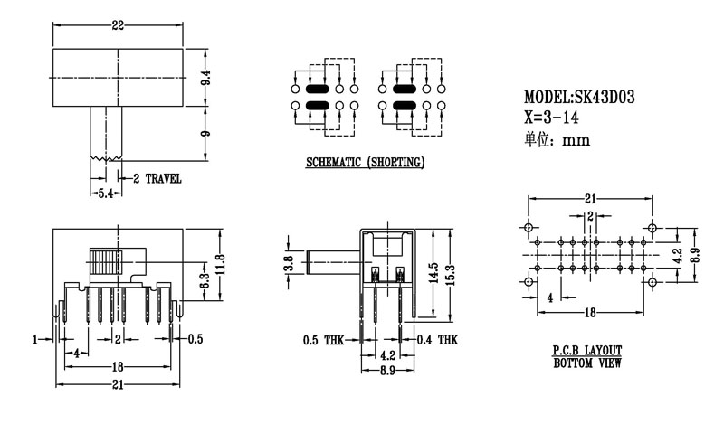 撥動開關主要技術參數/Slide Switch Main data