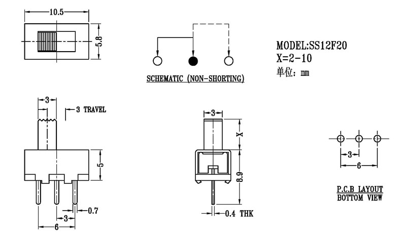 撥動開關主要技術參數/Slide Switch Main data