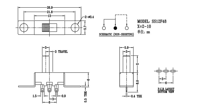 撥動開關(guān)主要技術(shù)參數(shù)/Slide Switch Main data