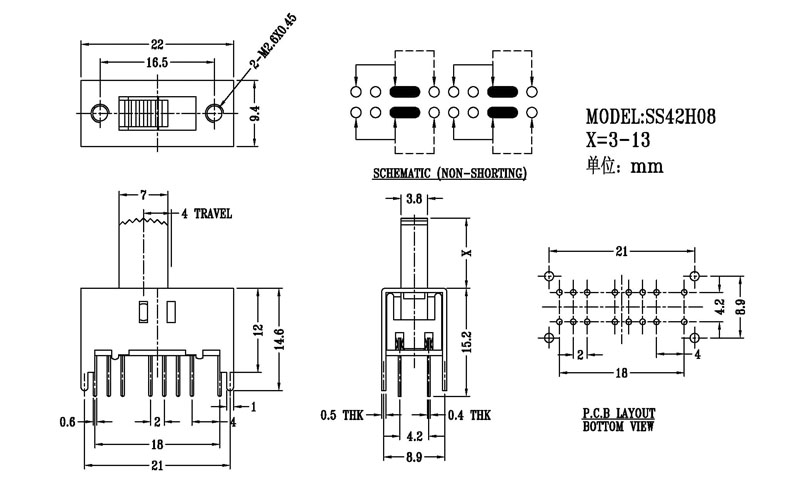 撥動(dòng)開(kāi)關(guān)主要技術(shù)參數(shù)/Slide Switch Main data